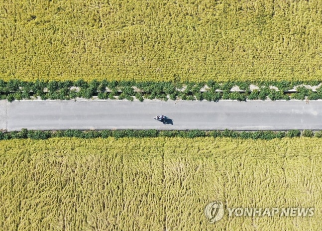 (보성=연합뉴스) 박철홍 기자 = 가을이 찾아온 7일 오전 전남 보성군 득량면의 논에서 벼가 누렇게 익어가고 있다. 2020.10.7